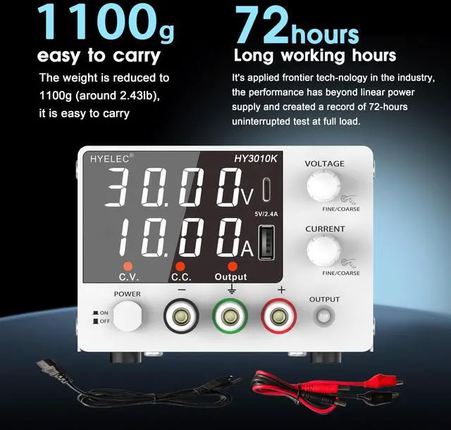 | Load regulation | CV=0.01%+5mV ( I=3A ) CC=0.2%+5mA ( I=3A ) CV=0.05%+5mV ( I>3A ) CC=0.5%+10mA ( I>3A ) |