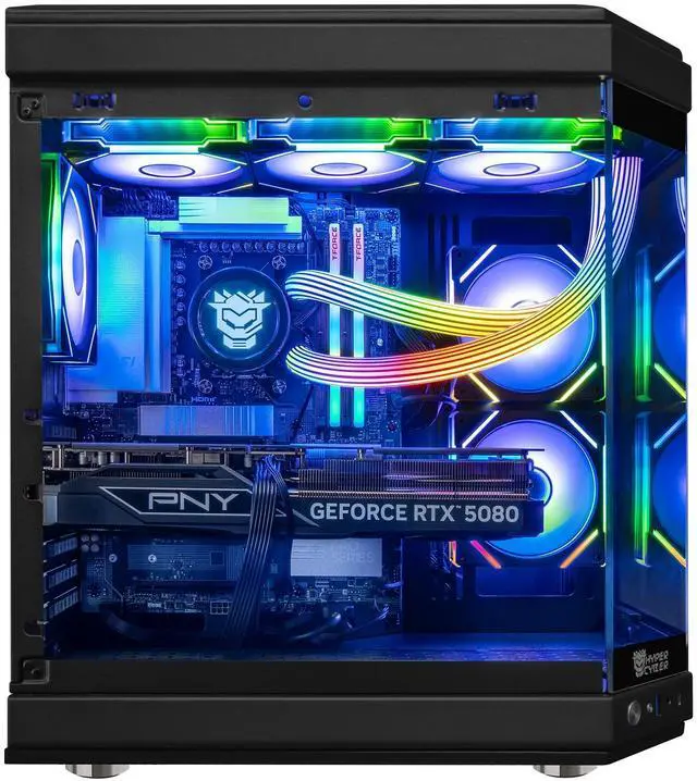 Hyper Cyber ULTRA BLACK Gaming Desktop AMD Ryzen 7 9800X3D, NVIDIA GeForce RTX 5090, 32GB DDR5, 4TB SSD, Windows 11 Home, RGB Lighting, WiFi, Ready to Use, Custom Cooler Display