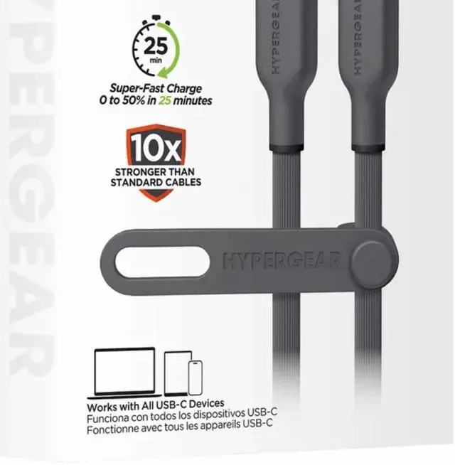Its time to level up your charging game. Our Flexi Pro cables are ultra-soft and flexible, bending and shaping to your needs while staying put where you want them no more frustrating twists, kinks, or tangles. The tough, tear-resistant exterior is 10 times stronger than standard cables, yet still incredibly soft to the touch. Plus, it comes with a silicone strap for easy storage and portability. Fully compatible with all USB-C devices, from phones to laptops, and Power Delivery-enabled to quickly charge your iPhone 15 or Android device from 0 to 50% in just 25 minutes.