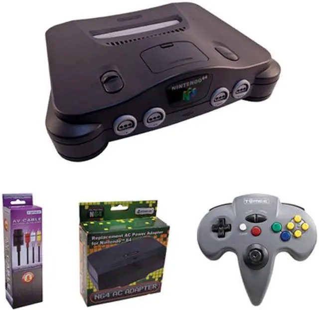 | Feature | Released in 1996, the Nintendo 64 was the first system with 64-bit graphics and built-in four player capability. Masterpieces such as Super Mario 64 and Super Smash Bros helped sell over 32 million N64 systems worldwide. The N64 System Combo comes with a refurbished N64 console, an AV Cable, an AC Power Adapter, and one wired controller. |