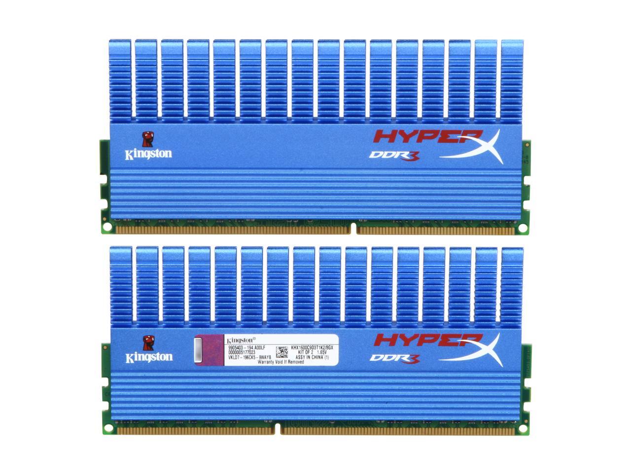 HyperX T1 8GB (2 x 4GB) PC3-12800 (1600MHz) Dual-channel Desktop KitSpecifically optimized for Intel Core i7 processors, these high performance modules have been tested to run at DDR3-1600 at a low latency timing of 9-9-9-27 at 1.65V. The exceptional clock and latency timing greatly enhance overall system performance. An all new heat sink design achieves effective maintenance of speed while prolonging the memory lifecycle. Quench your thirst for a performance upgrade!