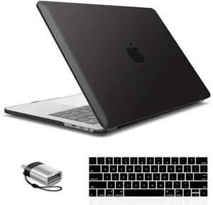IBENZER Compatible with MacBook Pro 15 Inch Case 2019 2018 2017 2016 A1990 A1707, Hard Shell Case with Keyboard Cover & Type C Adapter for Mac Pro 15 Touch Bar, Black, T15BK+1TC A