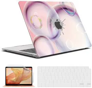 IBENZER Compatible with New MacBook Air 13 inch case 2022 2021 2020 M1 A2337 A2179 A1932, Hard Shell Case&Keyboard Cover&Screen Film for Mac Air 13 with Touch ID (2018-2022), Pink Bubble, AT13-PKBB+2
