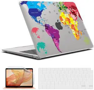 IBENZER Compatible with New MacBook Air 13 inch case 2022 2021 2020 M1 A2337 A2179 A1932, Hard Shell Case&Keyboard Cover&Screen Film for Mac Air 13 with Touch ID (2018-2022), Map, AT13MAP+2