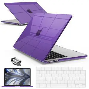 IBENZER Compatible with 2025 2024 2023 MacBook Air 15 inch case M4 A3241 M3 A3114 M2 A2941, HardShellCase &KeyboardCover &ScreenFilm &Type-C for Mac Air 15.3" Touch ID, Crystal Purple, AT15-CYPU+2TC