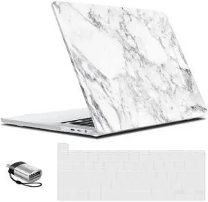 IBENZER Compatible with MacBook Pro 16 Inch Case A2141 Release 2020 2019, Hard Shell Case with Keyboard Cover & Type C Adapter for Old Version Mac Pro 16, White Marble, T16WHMB+1TC