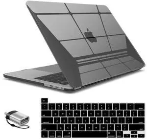 IBENZER Compatible with MacBook Pro 15 Inch Case 2019 2018 2017 2016 A1990 A1707, Hard Shell Case with Keyboard Cover & Type C Adapter for Mac Pro 15 Touch Bar, Black, T15BK+1TC A
