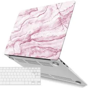 IBENZER Compatible with Old Version MacBook Air 13 Inch Case (2010-2017 Release). Models: A1466 / A1369, Plastic Hard Shell Case with Keyboard Cover for Mac Air 13, Pink Marble, A13PKMB+1