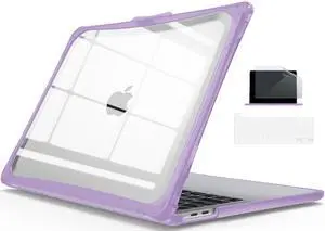 IBENZER Heavy Duty Case for 2024 2023 2022 M2 M1 MacBook Pro 13 inch A2338 A2289 A2251 A2159 A1989 with Screen Film&Keyboard Cover, Hexpact Case for 2024-2016 Mac Pro 13, Lilac Purple, HPE-T13LLPU+2