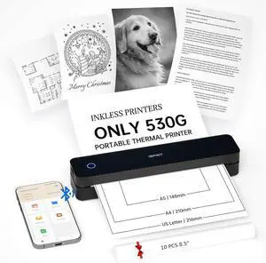iDPRT Portable Printer Wireless for Travel, Inkless Bluetooth Thermal Printers for Home,Office,Vehicles,Supports 8.5" x 11" US Letter&A4 A5 Size,Compatible with Android and iOS Phones&PC
