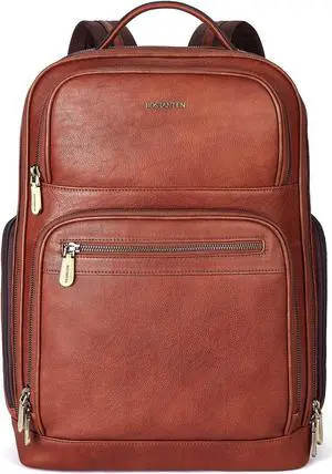 BOSTANTEN Leather Backpacks College 15.6" Laptop Travel Computer Shoulder Backpack For Men Coffeebrown