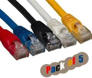 iMBAPrice Mixed Colors - 5 feet RJ45 Cat6 Snagless Ethernet Patch Cable Multi Color (Red, Blue, Black, White, Yellow) -