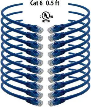 iMBAPrice 0.5 Ft (6 inch) Cat6 Ethernet Network Patch Cable RJ45 (10 Pack) Blue
