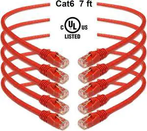 iMBAPrice 7 Feet Cat6 Cable - Premium Grade RJ45 Ethernet Snagless Patch Cord (Pack of 5) Red