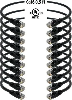 imbaprice 10 pack black 1/2 feet 0.5ft / 6 inch molded utp cat6 ethernet network patch cable rj45 m/m
