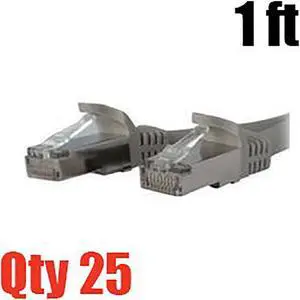 ( Pack of 25) Cat5e Molded Rj45 Network Ethernet Patch Cable 1 Feet - Gray