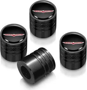 Chevrolet Corvette C7 Logo in Black on Black Aluminum Cylinder-Style Tire Valve Stem Caps