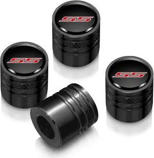 Chevrolet Camaro SS Logo in Black on Black Aluminum Cylinder-Style Tire Valve Stem Caps