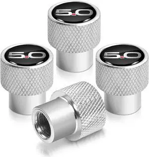 Ford Mustang 5.0 in Black on Silver Chrome Aluminum Tire Valve Stem Caps