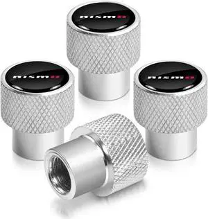 Nissan NISMO in Black on Shining Silver Aluminum Tire Valve Stem Caps