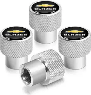 Chevrolet Blazer Logo in Black on Shining Silver Aluminum Tire Valve Stem Caps