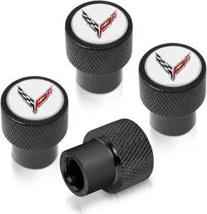 Chevrolet Corvette C8 Logo in White on Black Aluminum Tire Valve Stem Caps