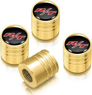 Dodge R/T Logo in Black on Golden Aluminum Cylinder-Style Tire Valve Stem Caps