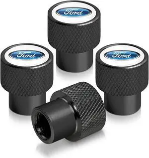 Ford Logo in White on Black Aluminum Tire Valve Stem Caps