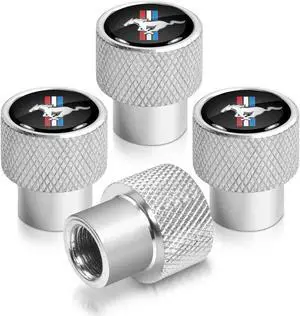 Ford Mustang Tri-Bar in Black on Silver Chrome Aluminum Tire Valve Stem Caps
