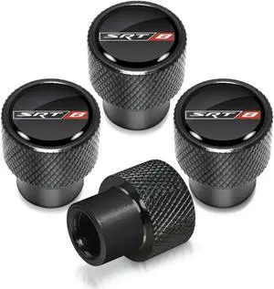 SRT-8 Logo in Black on Black Aluminum Tire Valve Stem Caps for Dodge Jeep RAM