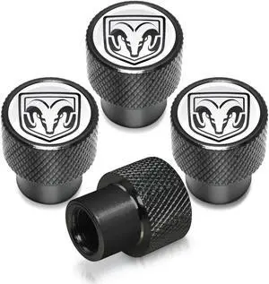 RAM in White on Black Aluminum Tire Valve Stem Caps