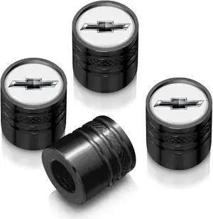 Chevrolet Black Logo in White on Black Aluminum Cylinder-Style Tire Valve Stem Caps