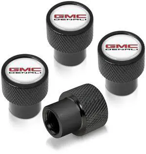 GMC Logo in White on Black Aluminum Tire Valve Stem Caps