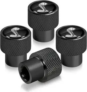 Ford Mustang Cobra Black on Black Aluminum Cylinder-Style Tire Valve Stem Caps