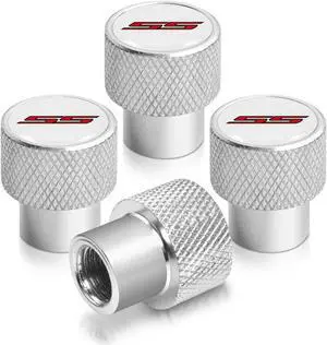 Chevrolet Camaro SS Logo White on Shining Silver Aluminum Tire Valve Stem Caps
