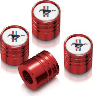 Ford Mustang 5.0 Logo in White on Red Aluminum Tire Valve Stem Caps