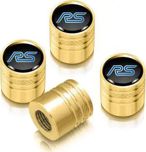 Ford Focus RS in Black on Golden Aluminum Cylinder-Style Tire Valve Stem Caps