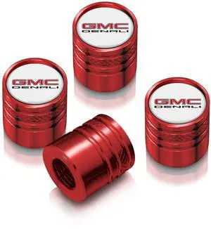 GMC Red Logo in White on Black Aluminum Cylinder-Style Tire Valve Stem Caps