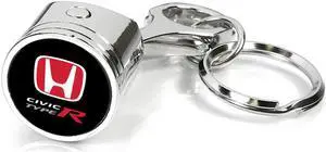 Honda Civic Type-R Red Logo Chrome Finish Engine Piston and Rod Metal Key Chain