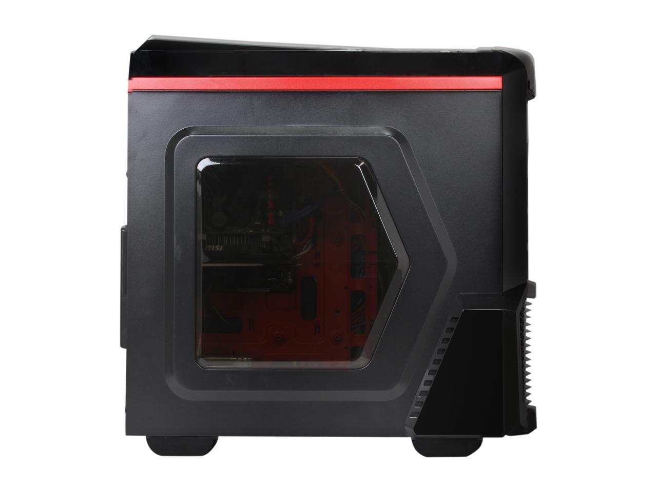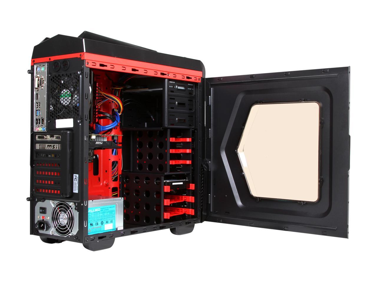 Pros: Full size tower. Looks cool and comes with a good processor and graphics card.