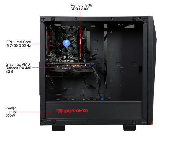 iBUYPOWER Desktop PC NE2101Si Intel Core i5-7400 8GB DDR4 1TB HDD AMD Radeon RX 480 Windows 10 Home 64-Bit