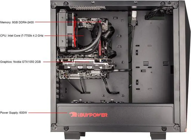 With striking design and impressive performance, the iBUYPOWER NE3102Si is a great home PC for gaming and multimedia entertainment. It's packed with 7th generation i7 7700K processor, the latest GeForce GTX 1050 graphics card and generous amount of memory, delivering performance and capability needed for day-to-day work and play. The eye-catching case features a jewel-cut front panel with bold red line accent, and the full side panel is transparent for an arresting look. Pre-installed LED fans deliver silent cooling, and enhance the vibe with glowing light that shine through. A high-sensitivity mouse and a premium keyboard round out this premium power house.