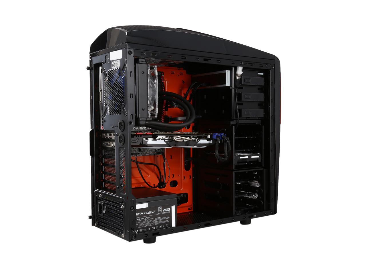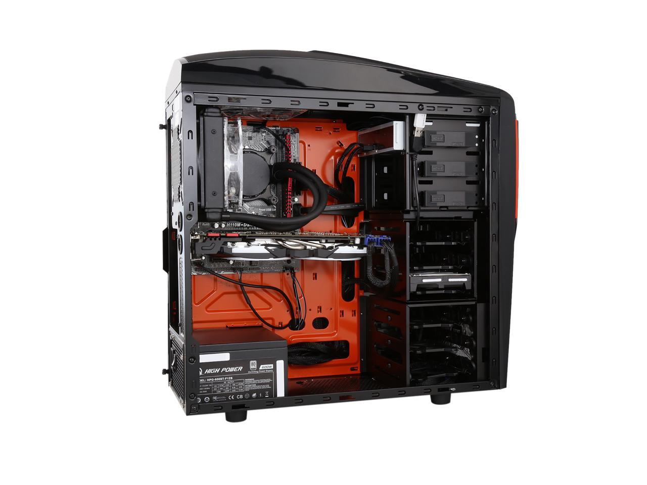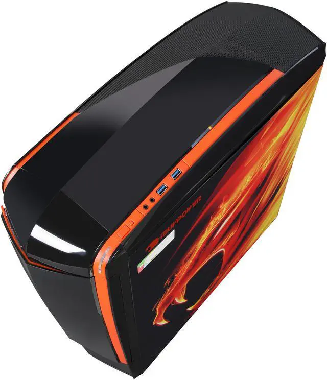 The Chimera 5 Flame Case features a notably aggressive design, which impresses you very much. Its large see-through side panel window allows you to show off your motherboard, high-end graphics card, etc. Complete with the built-in LED fans, the case gives you an eye-pleasing ambience.