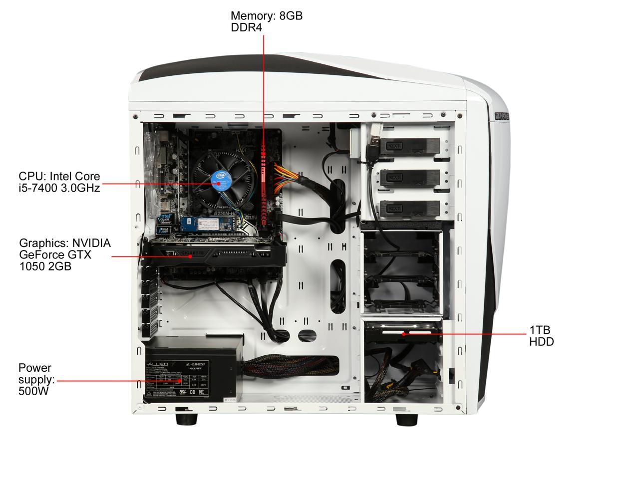 iBUYPOWER Desktop Computer NE8100Vi Intel Core i5 7th Gen 7400 (3.0 GHz) 8 GB DDR4 1 TB HDD 16 GB Optane Memory NVIDIA GeForce GTX 1050 Windows 10 Home 64-Bit