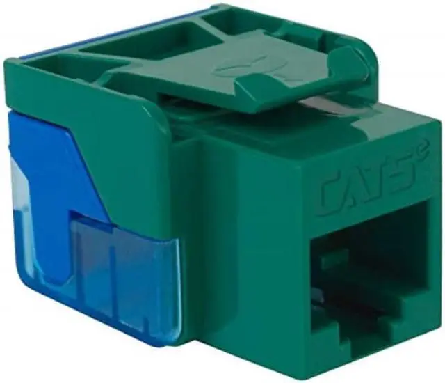 Category 5e EZ Category 5e modular jacks, RJ-45 keystone jack, is 8-position 8-conductor (8P8C) is engineered to provide superior performance and reliability, supporting up to Gigabit Ethernet applications. The advanced design provides optimum signal quality with up to 10dB headroom providing maximum bandwidth for todays application. Designed to be extremely easy to terminate, the Category 5e EZ modular jacks simplifies installation and improves overall installation time. Also known as -ICC IC1078E5GN EZ Style Category 5e RJ45 Keystone Modular Jack Surface Mount-ICC IC1078E5GN - Cat5 Jck GREEN-ICC IC1078E5GN Network Connector - 1 x RJ-45 Female - Green