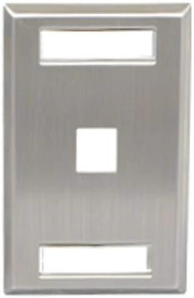ICC IC107S01SS FACEPLATE, ID, STAINLESS, 1-GANG, 1-PORTSingle Gang 1 Port ID Stainless Steel Wall PlateSingle Port, Single GangClassic Steel DesignOffers a flush face surfaceEasy station identification with use of enclosed labelsInstall with a standard 1 gang low voltage mounting bracketWorks with all standard modular keystone jacks and connectorsDesigned to distribute voice, data, and other communications needsFor commercial and residential low voltage useUL Listed