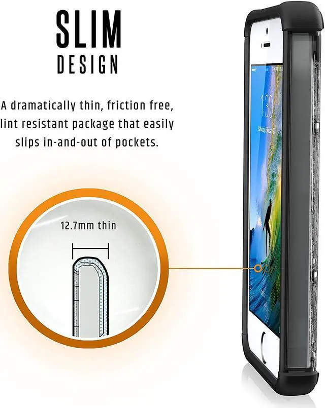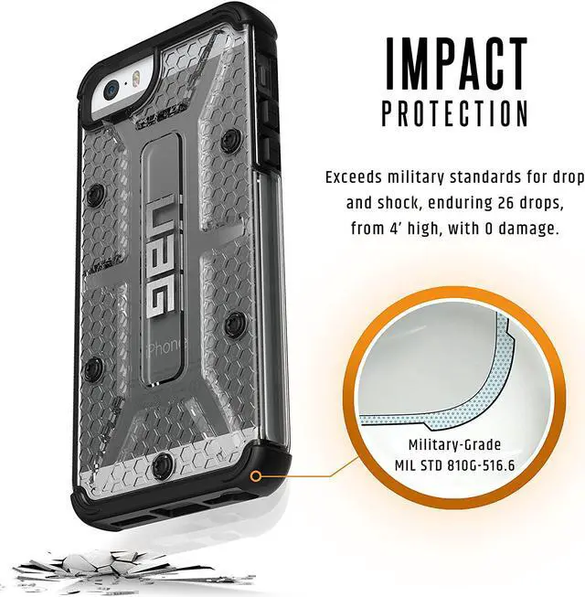 URBAN ARMOR GEAR Composite Case for Apple iPhone 5/5S/SE URBAN ARMOR GEAR Composite Case Clear for Apple iPhone SE offers an elevated level of protection in a sleek, low profile package. The Armor shell paired with an impact resistant soft core protects your iPhone SE/5s/5 from drops. The Composite Case features over sized buttons and easy access to all ports so that you do not lose any of the functionality of your device. An engineered bezel deflects unwanted flash interference when you take pictures in order to ensure that they turn out beautiful every time. Compatible with: Apple iPhone 5/5S/SE;