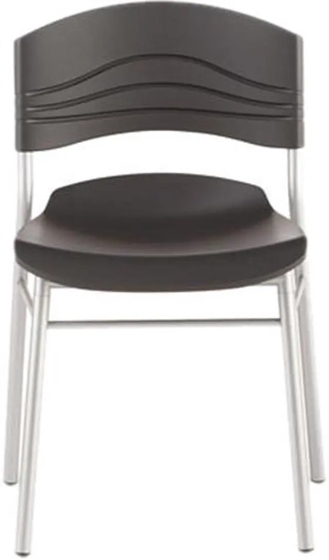 Cafe/Bistro Chair, CafeWorks Series, Overall Height 32 in, Overall Width 17 in, Overall Depth 18 in, Seat Height 18 in, Seat Width 21 in, Seat Depth 19 in, Back Height 14 in, Back Width 21 in, Seat Color Graphite, Back Color Graphite, Frame Color Silver, Seat Material Blow Molded High Density Polyethylene, Back Material Blow Molded HDPE, Frame Material Steel, Assembled, Arm Style Armless, Weight Capacity 275 lb, Package Quantity 2. This item has been restricted from sale in the following state (s): []