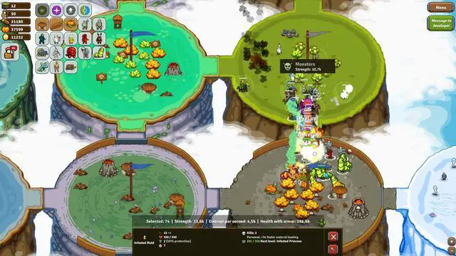 Now that power rests within you! Play as two new leaders and control their unique factions. Recruit special units - a wide array of elves, beasts, and tree creatures - even some ferocious fire units! Use their mysterious magic to transform circles into your desired biome. Water circle? Child’s play. Lush forests? Easy peasy. Acid pits that deal damage to everything in the circle? You got it!