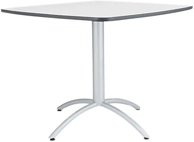 Cafe/Breakroom Table, Surface Material Laminated Melamine, Square, Width 36 in, Length 36 In., Height 30 in, Tabletop Color Family Gray, Tabletop Color Gray, Frame Color Silver, Assembled/Unassembled Unassembled, Frame Material Steel, Edge Color Gray, Edge Type T-Molded, Leg Type Arched, Top Thickness 1 1/8 in, Series CafeWorks, Load Rating 250 lb, Standards Not Applicable, Includes (4) Leveling Glides